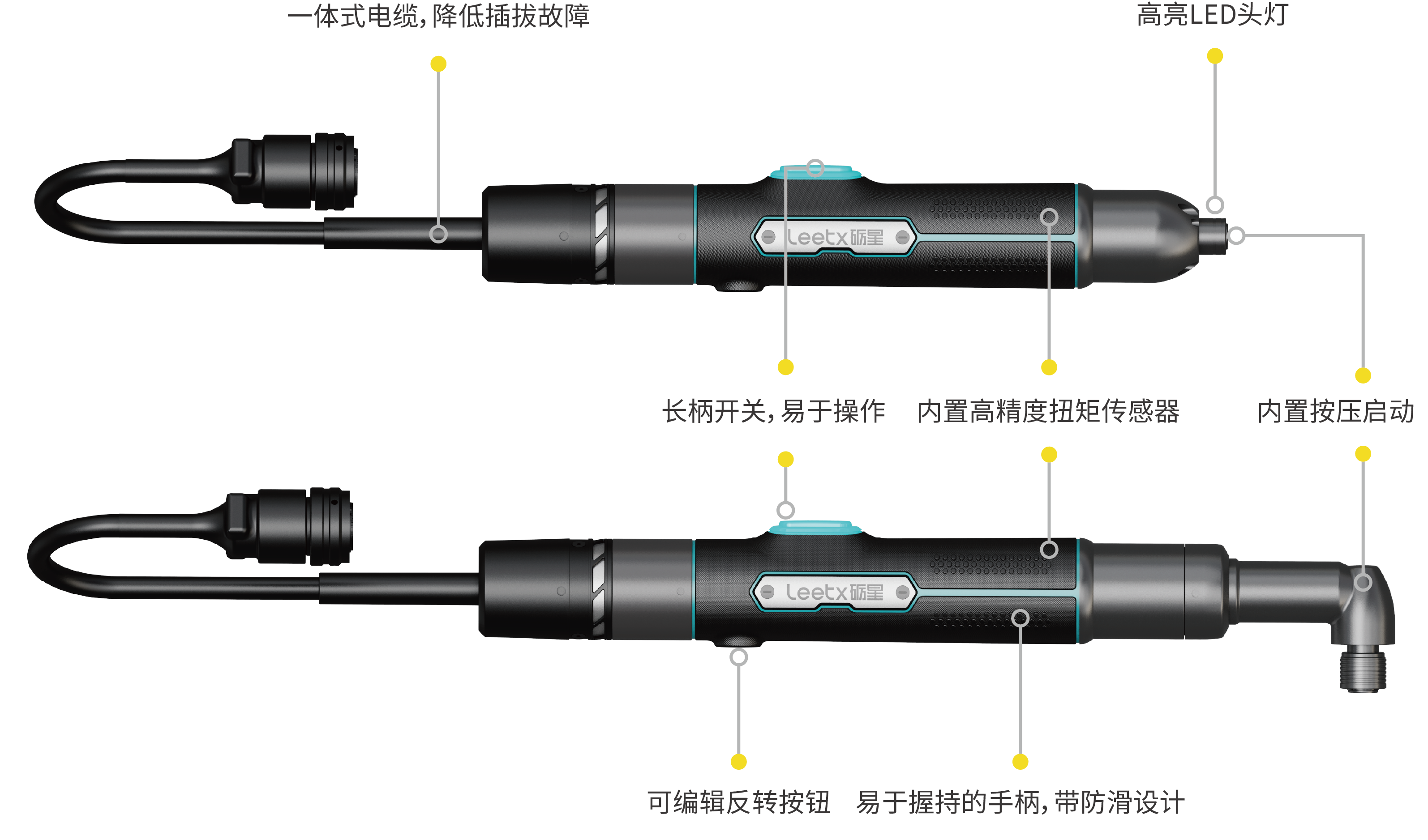 砺星螺丝刀配备独立的扭矩传感器和角度编码器,在进行扭矩控制的同时可监控角度变化
