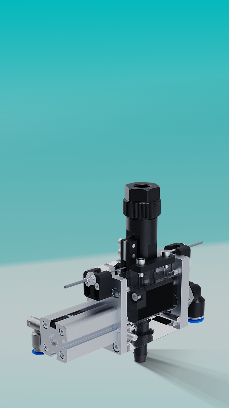 气缸驱动滑块,实现通道快速切换