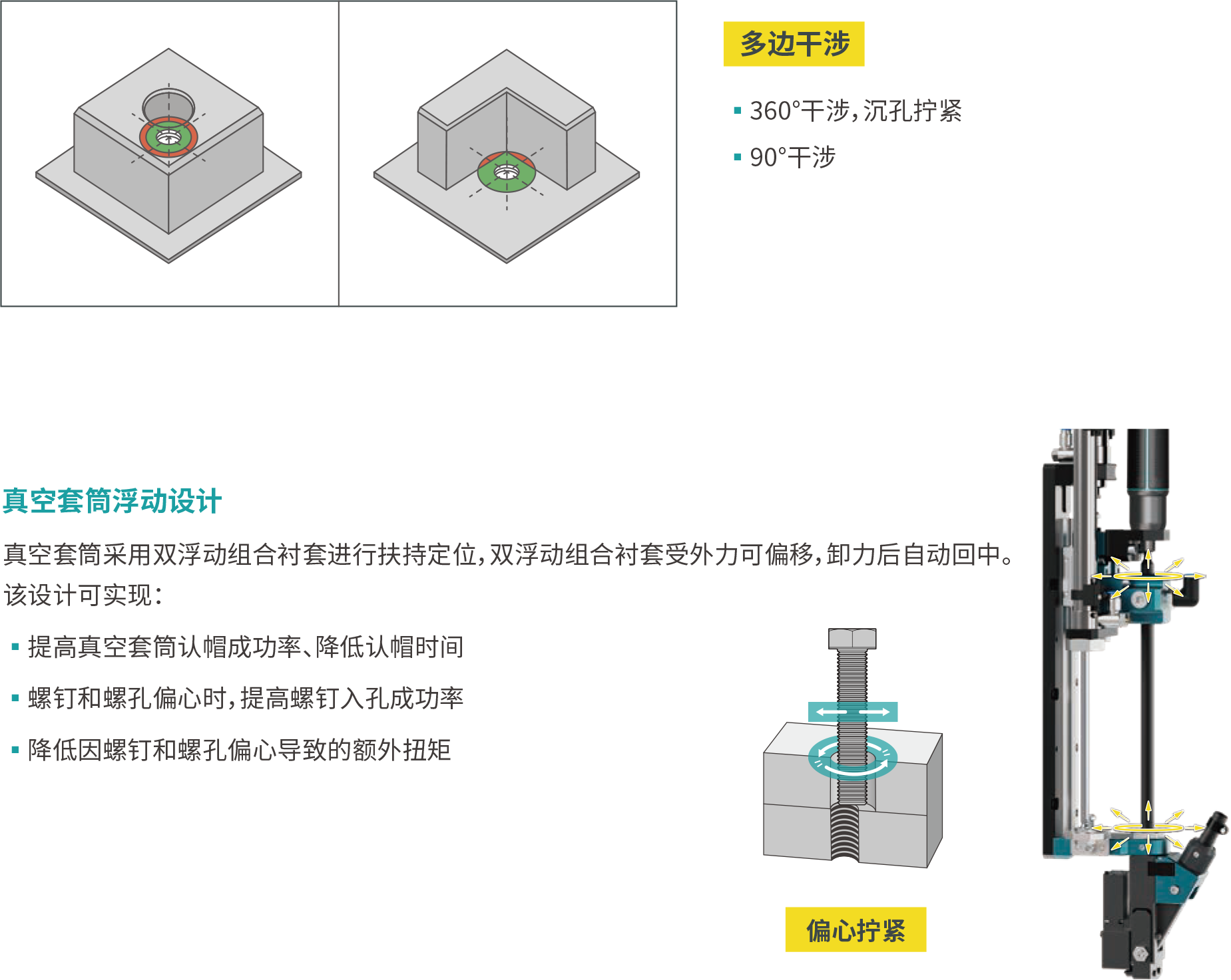 螺钉有一定偏心量的时候自动调节对中进行拧紧